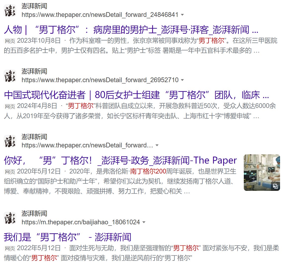 其实,在影视剧名、新闻标题中使用“谐音梗”,并非什么新鲜操作。和此次片名一字之差的“男丁格尔”,在网络上随便一搜也遍地开花。